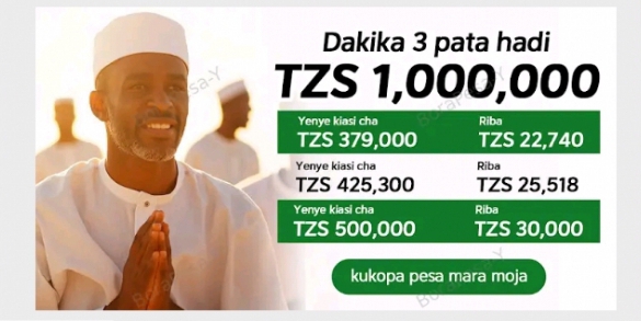 Tunakukopesha mkopo wa hadi TZS 1,000,000 kupitia simu yako ya mkononi ndani ya dk 30 tu popote ulipo ndani ya Tanzania! Hatuhitaji dhamana ya mali ka... Read more